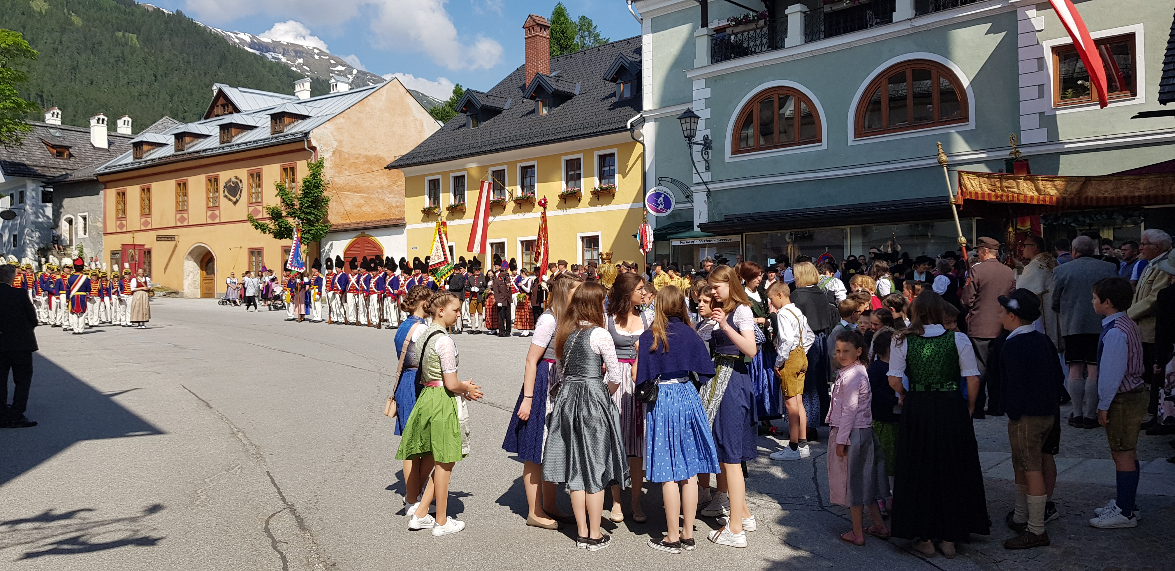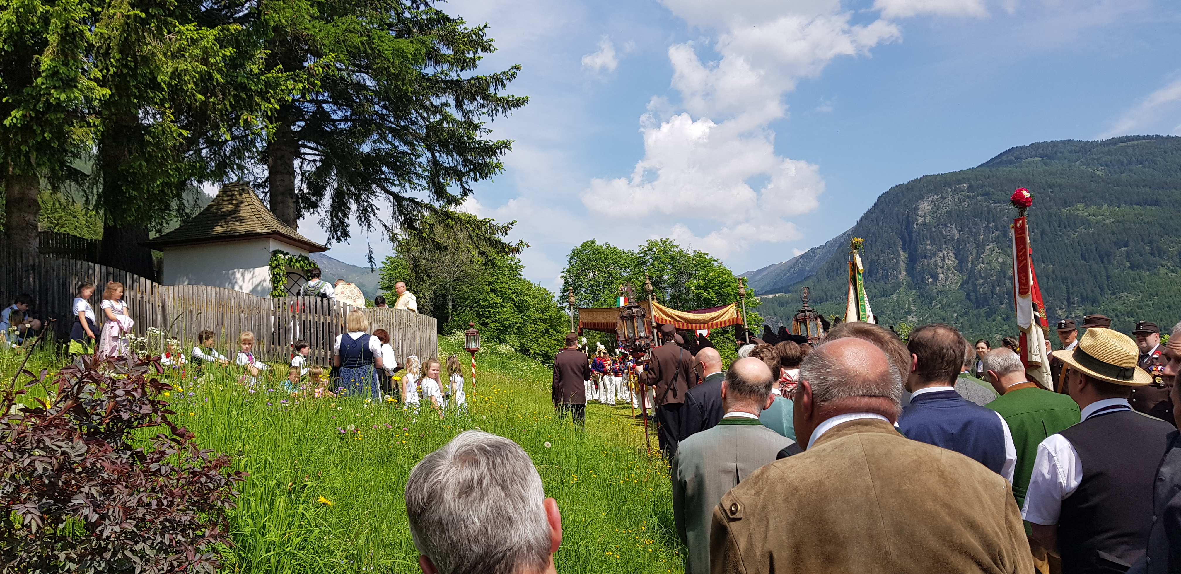 Interessante Aufstellung der einzelnen Gruppierungen des Dorfes. Rechts, die von Kindern getragegene Marienstatue
